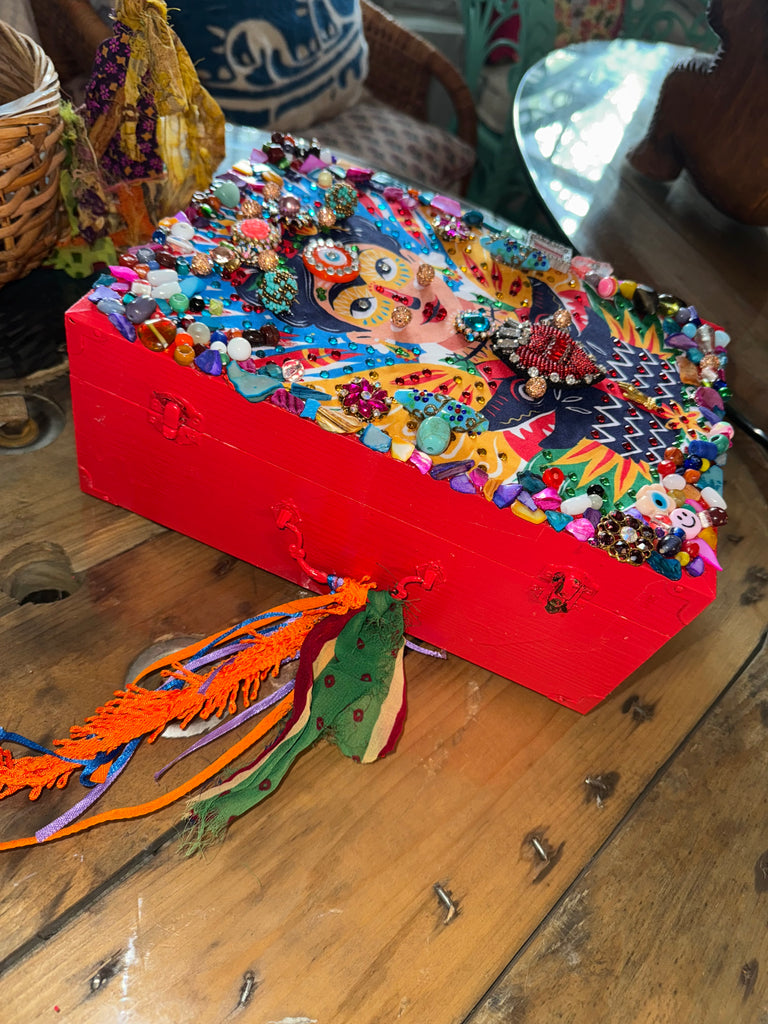 This handcrafted Memorabilia Box is a vibrant altar of devotion, created to honor the energy of self-expression and resilience that Frida represents.
