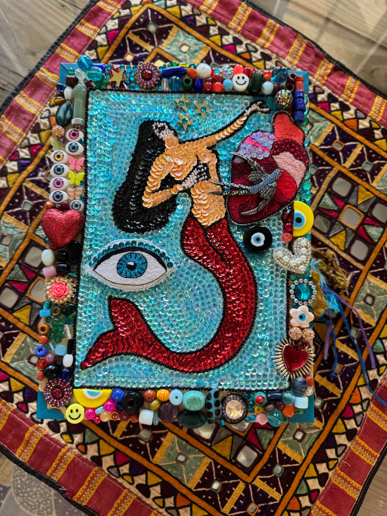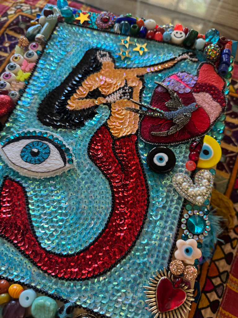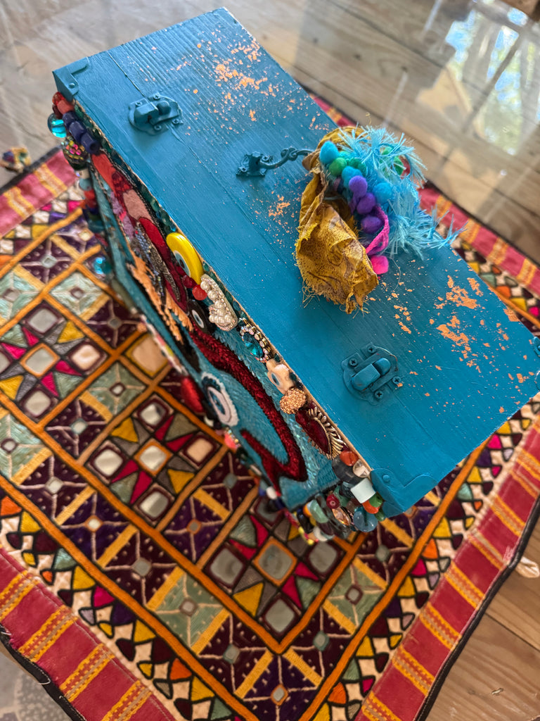 Each box is an original artwork by Pachamama Bohemian, richly adorned with sequins, beads, crystals, and symbolic charms.